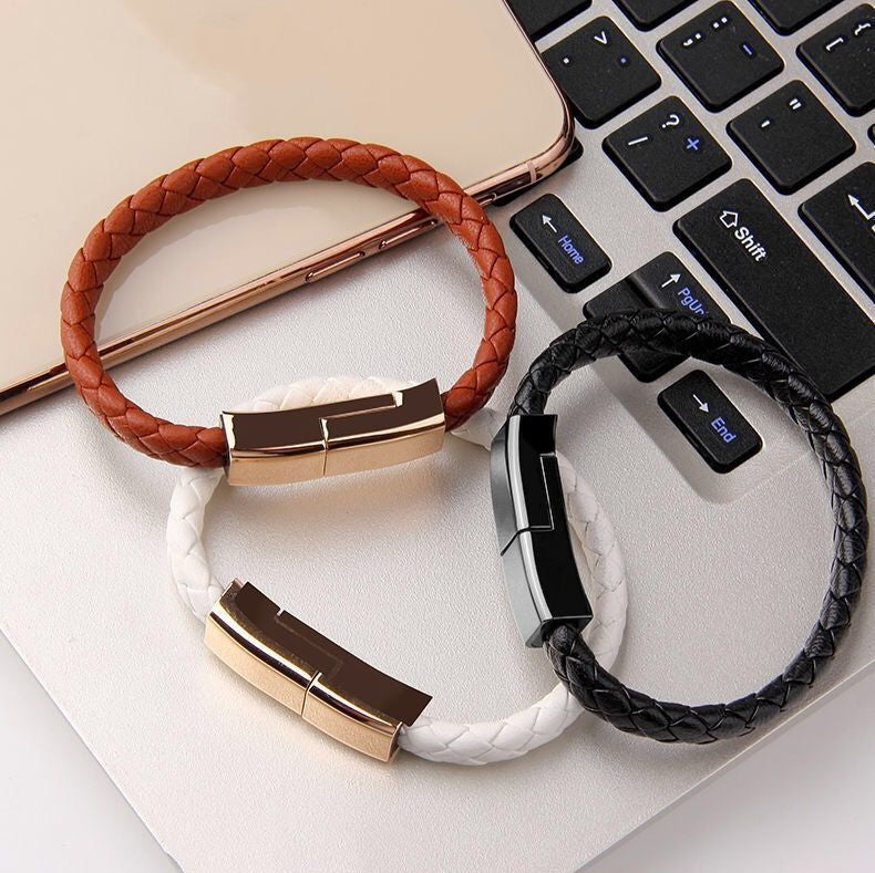 In normal times, the charger bracelet can be worn on the wrist as an exquisite leather bracelet. It can also be used as a key chain or as an ornament hanging on the bag. In case of emergency, this product can be used as spare charging cable. Charging bracelet is a rare creative gift because of its stylish styling and rapid charging.